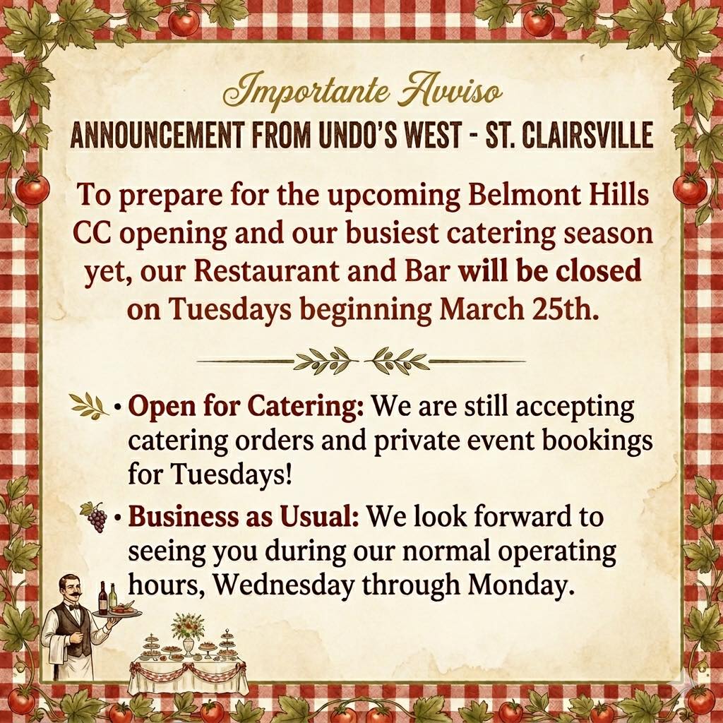 Undo's West St. Clairsville closed on Tuesdays